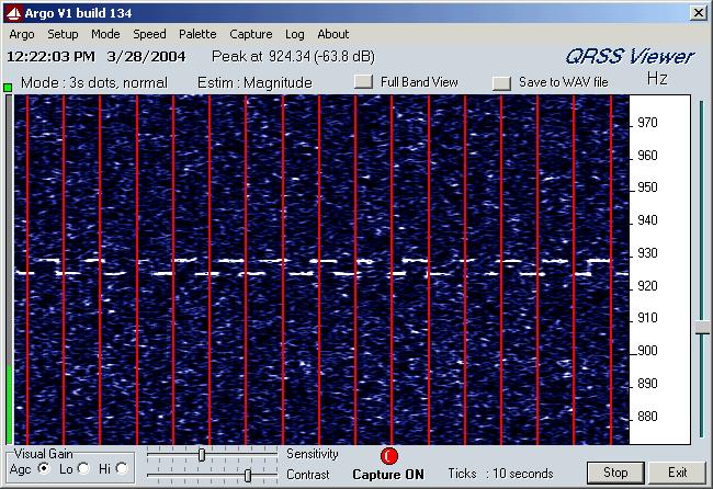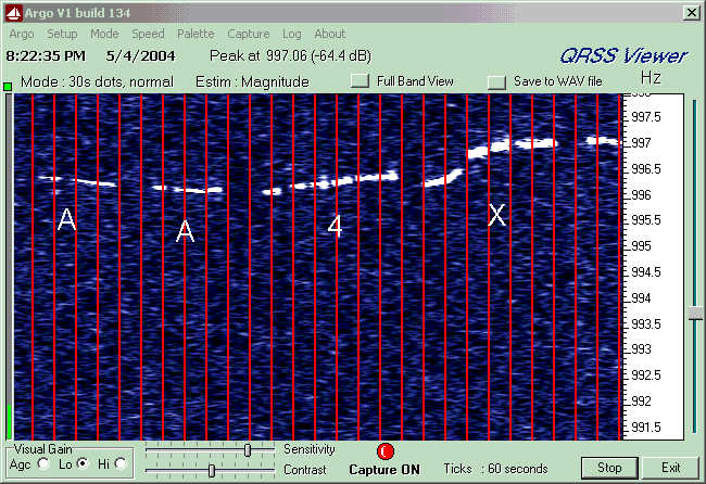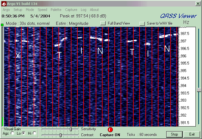 waterfall. As a QRSS message can take a bit of time to arrive, Argo